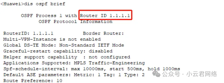 ospf 1 router-id 2.2.2.2 #手动指定唯一ID1.