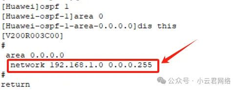 #进入到OSPF对应的区域下查看宣告的网段信息