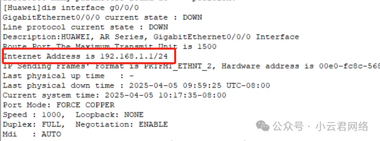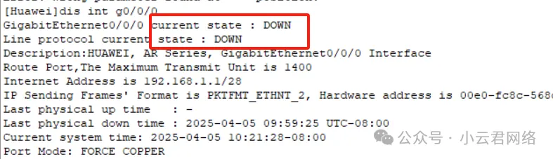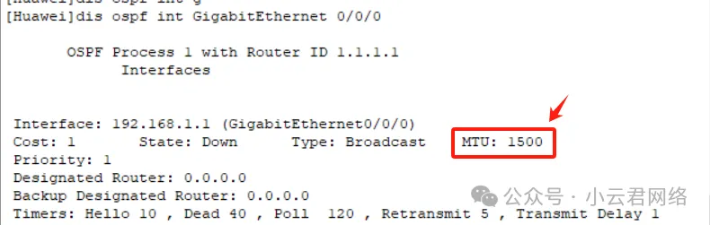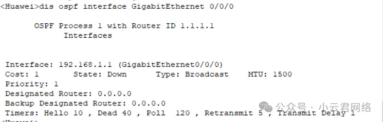 dis ospf interface GigabitEthernet X/X/X #查看接口状态信息1.