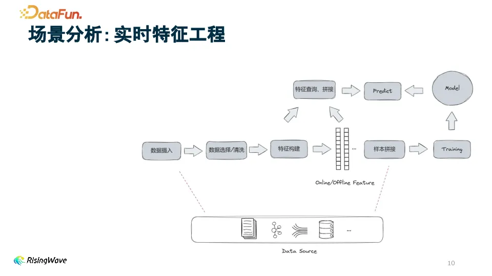 本文将介绍 RisingWave 在实时特征工程中的应用。RisingWave 是一款开源的流式数据库,具有易用、健壮、上下游生态系统开放、性价比高等特点,支持 SQL 和 UDF 扩展,其架构包含接入层、计算层和存储引擎,支持多种数据源和下游系统,通过物化视图等实现增量实时计算。在实时特征工程中,它能够助力数据摄入、数据清洗、特征构建、样本拼接和特征查询等环节,提供高效的状态管理和 UDF 支持。此外,RisingWave 2.0 带来了如 Premium 版本、云版本增强、对流批统一的改进等新特性。通过阅读本文,读者可深入了解 RisingWave 在实时数据处理领域的优势与应用。