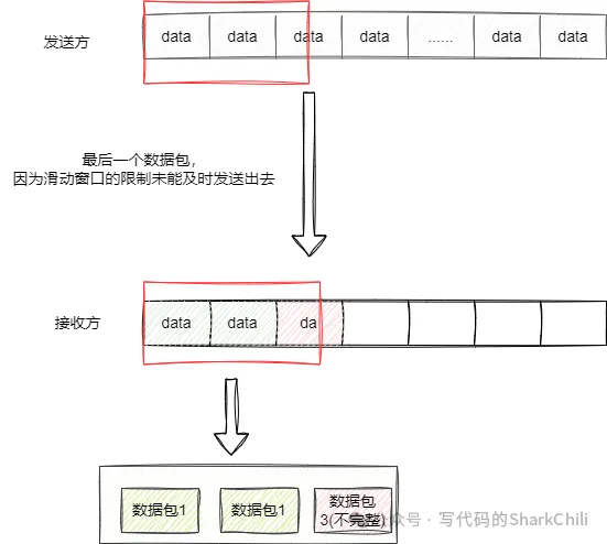 (1) 发送方发送的数据达到了滑动窗口的限制,停止发送,接收方的socket缓冲区拿到这些数据后,直接向应用层传输,因为包不是完整的,从接收方的角度来看,出现了拆包。