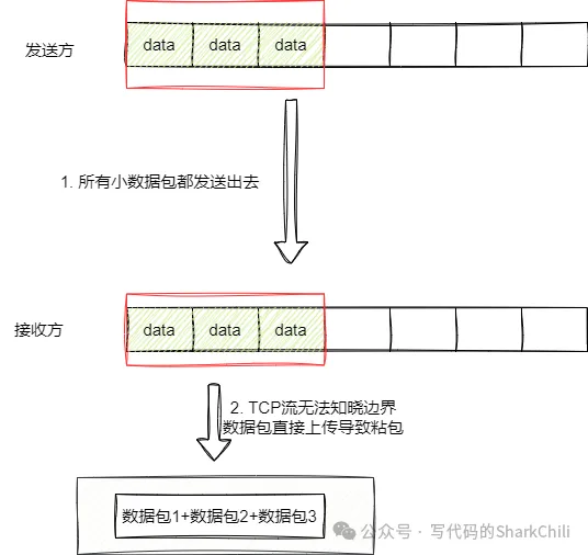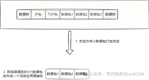 很明显如果将多个小的数据包合并发送,接收方也很可能因为无法确认数据包的边界而出现粘包或拆包问题: