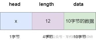 最后一种,也是笔者比较推荐的一种长度,即自定义协议,我们在传输过程中,可能数据的长度或者分隔符都无法保证,所以我们可以和客户端协商一下,在传输的数据头部添加一个数据包长度,例如用4字节表示数据包长度。