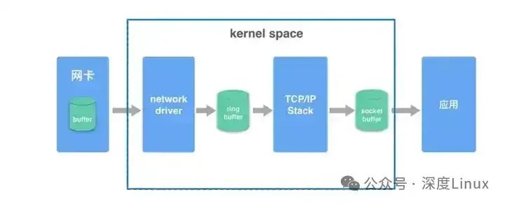 在开始之前,我们先用一张图解释 linux 系统接收网络报文的过程: