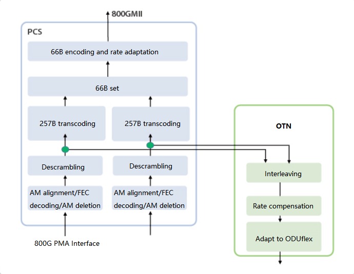 800GE到OTN的处理功能示意图