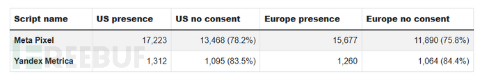 BuiltWith统计显示Meta Pixel已部署在超578万个网站,使_fbp成为全网第三大第一方Cookie。对全球Top 10万网站的监测发现:美国17,223个站点、欧盟15,677个站点存在本地主机通信行为,其中75-78%网站在未经用户明确同意时触发该机制。
