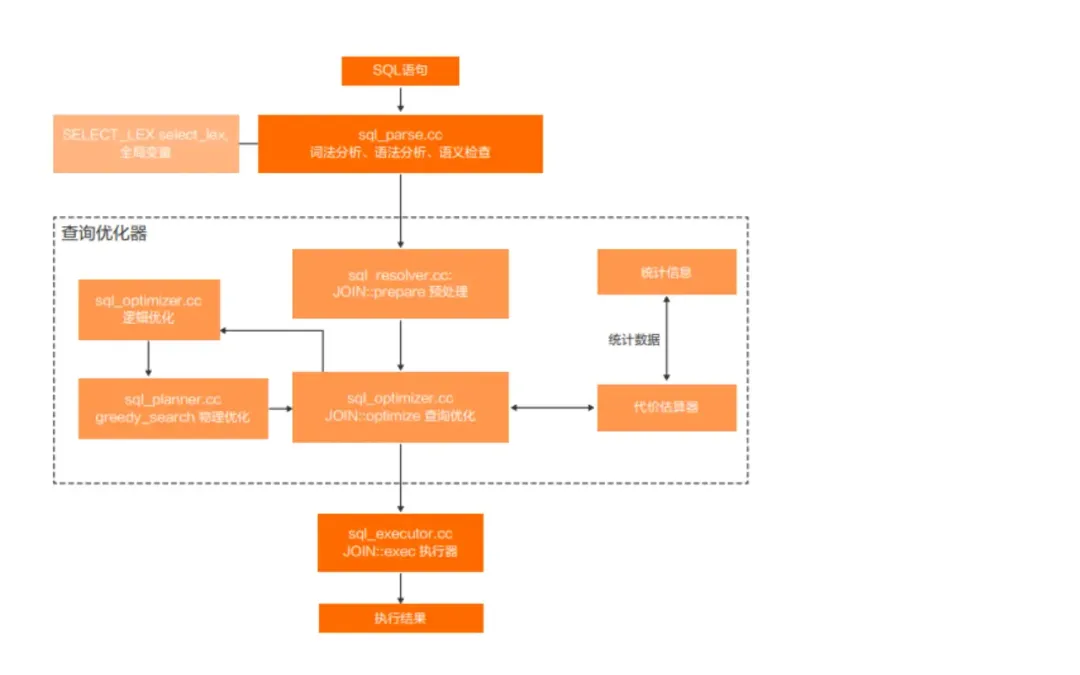 MySQL执行一条SQL语句,涉及到以下几个过程: