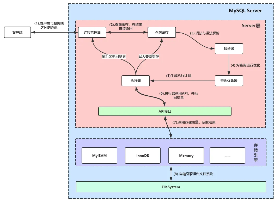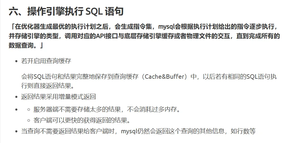 经过优化器确定执行方案后,就由执行器真正开始执行SQL语句,执行器通过API与存储引擎交互,获取数据或对数据进行修改,并将执行结果返回给用户。