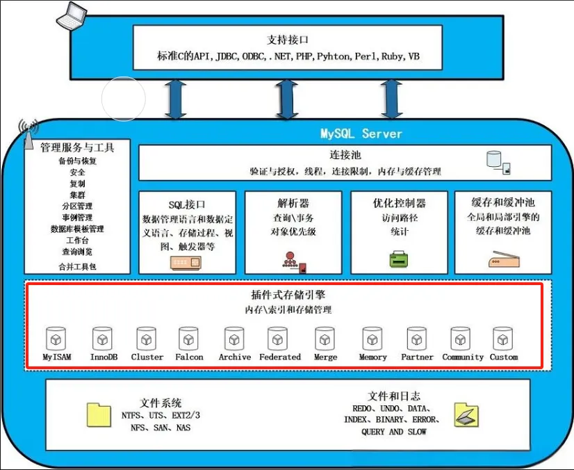 MySQL是基于磁盘进行数据存储的关系型数据库, 所有的数据和索引都以磁盘文件的方式存储, 在有需要时载入内存读取。MySQL支持多种存储引擎,不同的存储引擎保存的文件不同。InnoDB是MySQL使用最为广泛的存储引擎,下面我们以InnoDB引擎为例来说明。