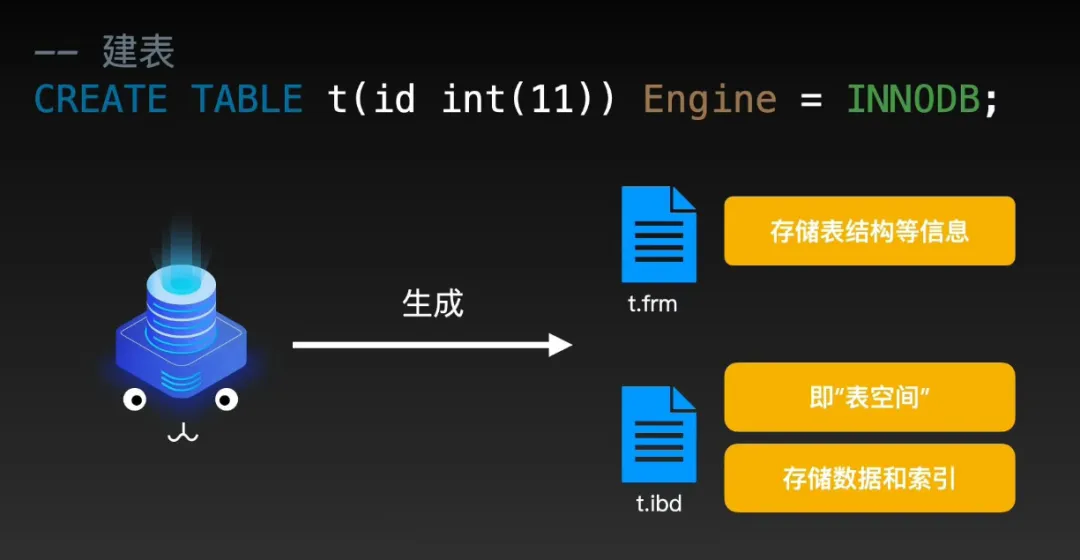 当我们创建一个数据库表时,InnoDB会创建三个文件。其中,ibd后缀的文件是对表数据和索引实际存储的文件,也称为表空间文件。
