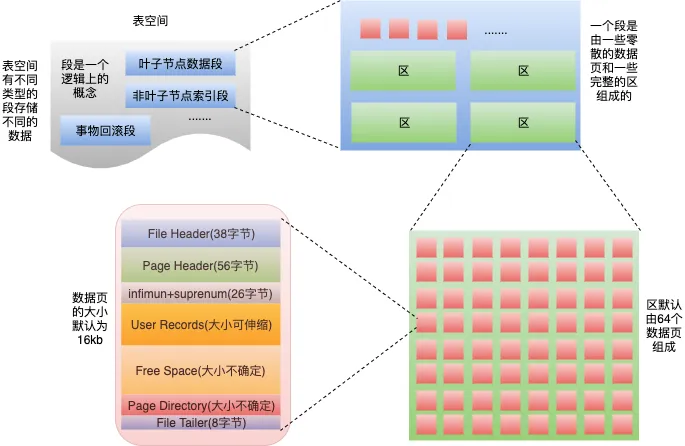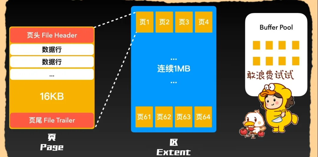 区是比页大一级的存储结构,一个区会分配64 个连续的页。因为页大小默认是16KB,所以一个区的大小是 64个16KB,也就是1MB。