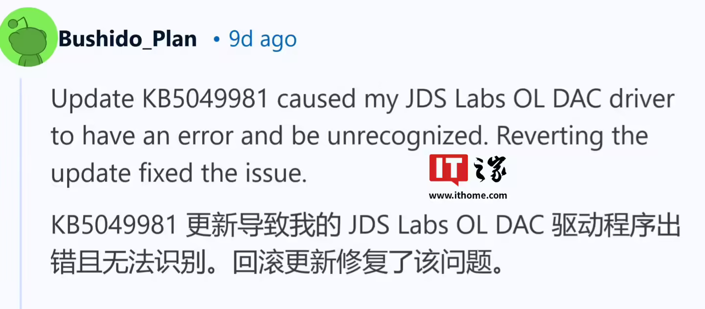 多个品牌的 DAC 设备均出现此问题,但在未安装 KB5049981 更新的机器上运行正常。DAC(数模转换器)将笔记本电脑或其他设备的数字存储信息转换为模拟信号,对于音频播放至关重要。