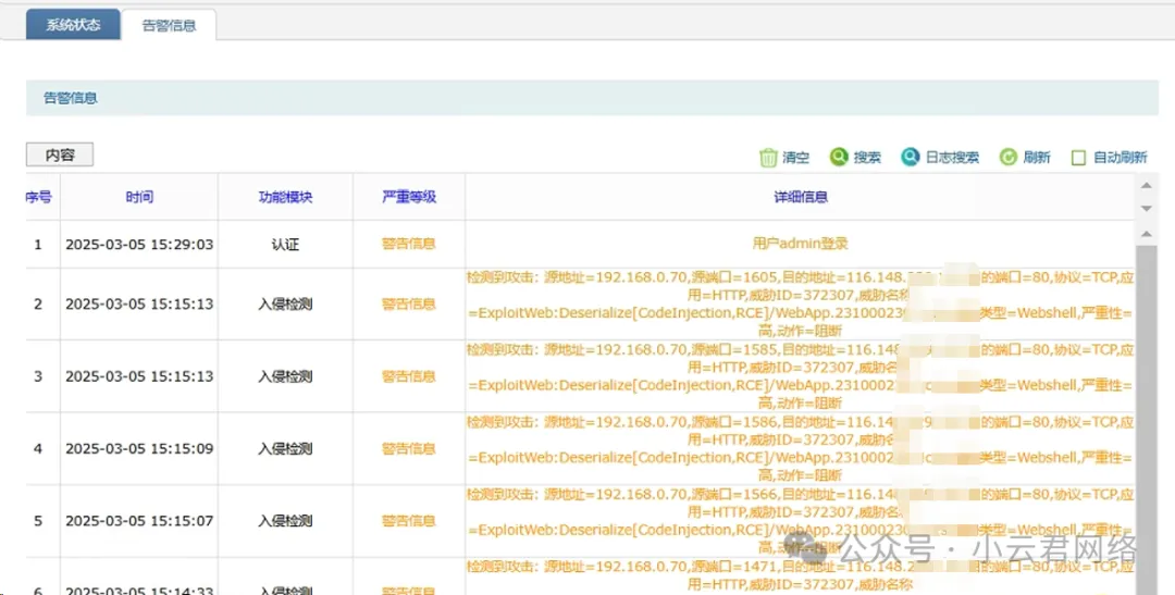 第三步:确认防火墙的告警日志