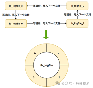 Redo Log采用固定大小并循环写入的方式,类似环形缓冲区。当日志文件写满时,会从头开始覆盖之前的内容。这样的设计是因为Redo Log记录的是数据页的修改,而一旦Buffer Pool中的数据页被刷写到磁盘,之前的Redo Log记录就不在有效。新的日志会覆盖这些过时的记录。此外,硬盘上的Redo Log文件并非单一存在,而是以文件组的形式存储,每个文件的大小都相同。