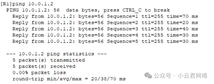 物理链路检查无问题,下一步需要进入路由CLI界面,通过ping测试两端设备的连通性,这里进入R1路由的CLI界面ping对端接口: