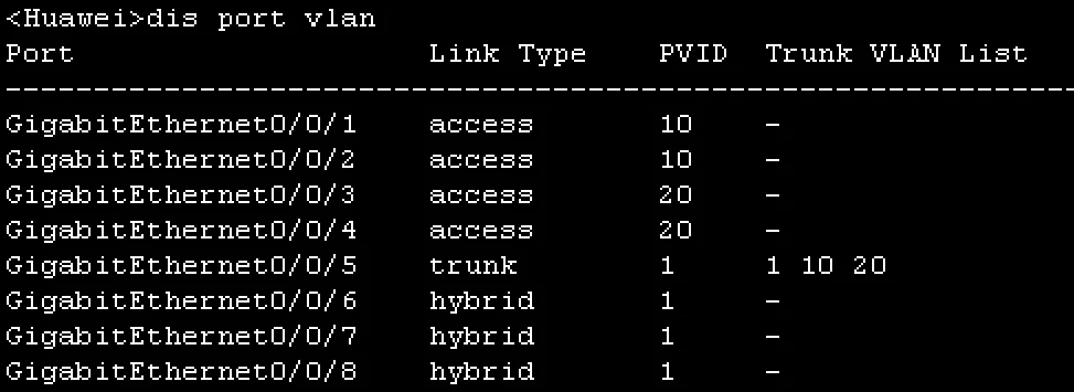 [Huawei-GigabitEthernet0/0/1] port link-type access