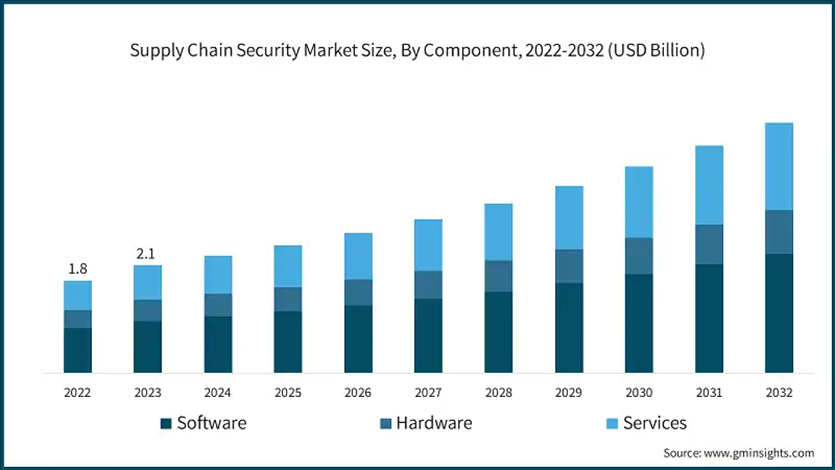 尽管各家报告的具体数字有所不同,但增长趋势一致:预计未来几年复合年增长率(CAGR)在10%至12.6%之间。基于这一增长率,2030年左右,全球市场规模预计将达到49亿至51.4亿美元。这一增长速度与广泛的数字化转型市场和物联网(IoT)市场的快速扩张相呼应,也反映了数字化经济转型对供应链安全依赖性的增强。