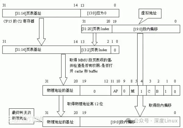 MMU的线性地址转换是通过页表进行的,具体过程如下图所示: