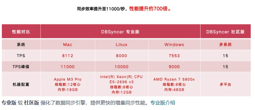 根据DBSyncer官方介绍,社区版的效率确实相对于专业版迁移效率差别很大,大家可以下载测试一下。另外,也可以配置大字段、大表,不同数据库的兼容配置、增量同步等进行更个方面的测试。