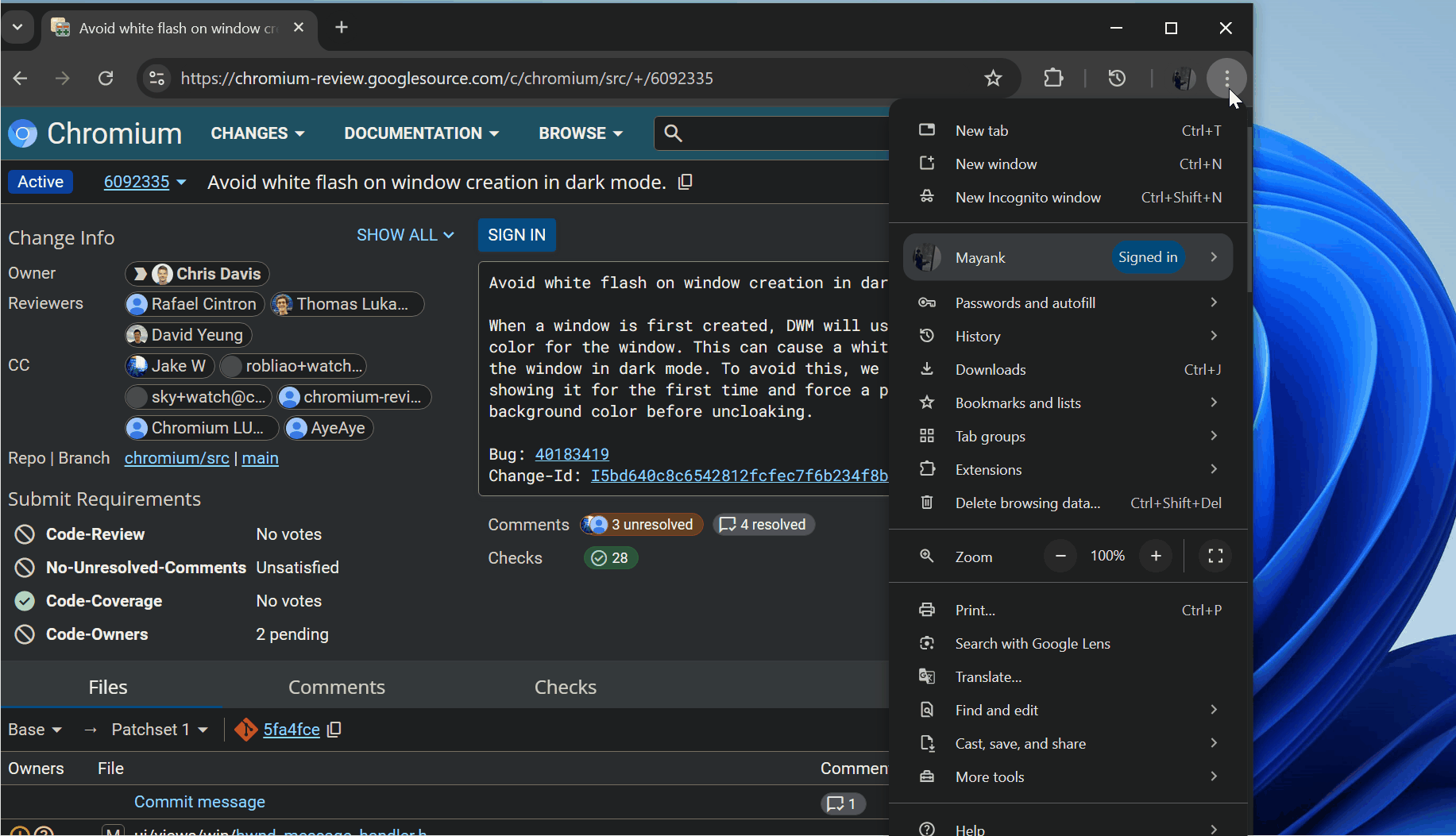 Chris Davis 的隐藏窗口方法即将实施,这意味着用户在 Windows 11(以及 Windows 10)上将不再看到启动浏览器或创建新窗口时的白闪问题。相关改动将很快推送至 Chrome 和 Edge 浏览器。