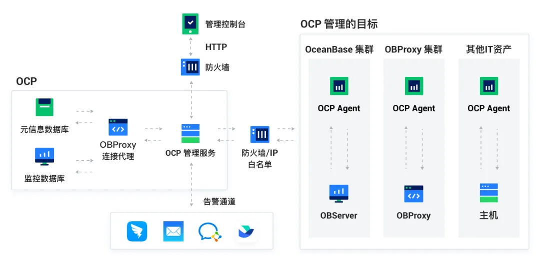 2.1 OCP 平台部署OceanBase 云平台(OceanBase Cloud Platform,OCP)是一款以 OceanBase 为核心的企业级数据库管理平台,提供对 OceanBase 集群和租户等组件的全生命周期管理服务,也对 OceanBase 相关的资源(主机、网络和软件包等)提供管理服务,能够更加高效地管理 OceanBase 集群,降低企业的 IT 运维成本。