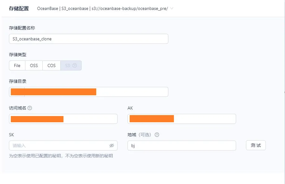 OceanBase 数据库支持的备份介质丰富,包括 NFS、阿里云 OSS、腾讯云 COS、AWS S3 ,以及兼容 S3 协议的对象存储。此处值得一提的是,在 OCP上创建备份策略,存储介质为S3,集群发起备份时要把备份文件存放在指定S3目录,如下图所示。