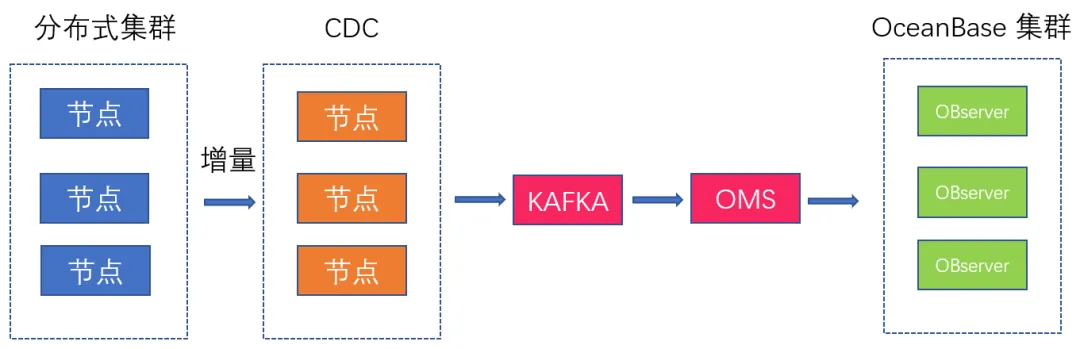 CDC 把集群的增量数据解析为有序的行级变更数据输出到下游的 Kafka,OMS 通过消费 Kafka 的增量数据写入 OceanBase 完成增量同步。Kafka的数据默认保留7天,如果考虑到数据延迟较大的情况,可以适当调整 Kafka 数据保留时间,同时,OMS 也可以通过增加并发等配置来提高同步速度。