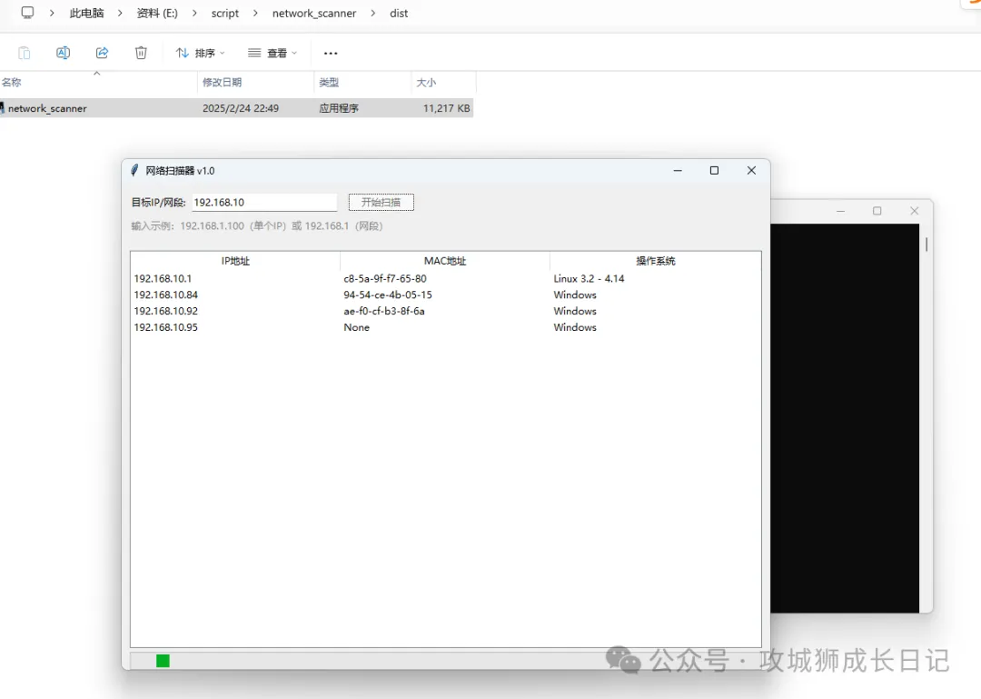 之前我们已经分享过一篇关于如何使用Python脚本扫描局域网IP并获取在线设备MAC地址的文章。为了让大家日后使用起来更加方便,这次我们将这个脚本通过Python的第三方库Tkinter封装成了一个简单易用的小软件。