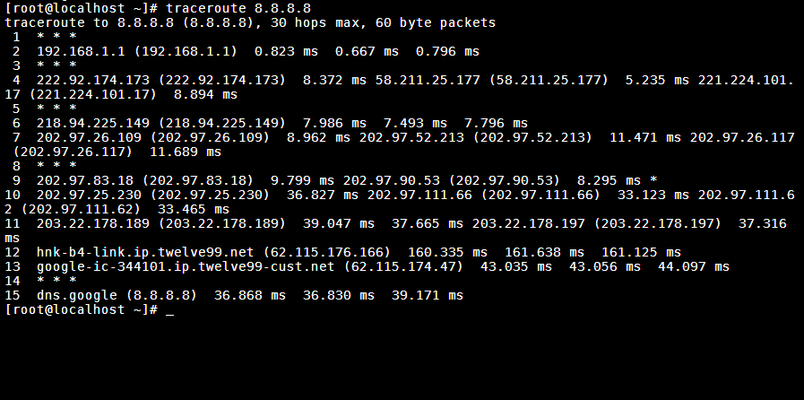 3. 显示结果:发送方主机显示从源主机到目标主机的每一步路径信息,包括每个路由器的IP地址和响应时间。