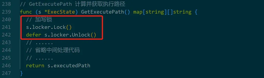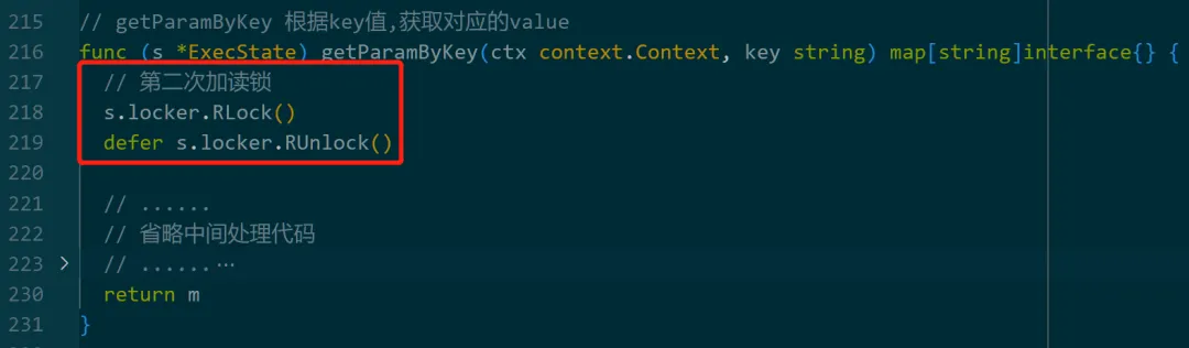 锁的粒度一定要小,一方面避免粒度过大造成锁忘记释放,另一方面避免临界区过大造成资源浪费。避免在临界区嵌套调用函数,一般情况下,需要加锁的情况无外乎对数据的读和写操作,应当在一眼所视范围内对数据进行读写操作,而不是通过调用函数的方式。defer释放锁要格外小心,defer可以方便的释放锁,可以避免忘记释放锁,可能第一版代码临界区就几行,随着后续维护者的拓展,临界区变成了几十行、上百行,这个时候其实就需要review一下,锁的保护范围到底是谁,是否粒度过大;若粒度过大,就应该弃用defer,主动尽早释放锁。3. 拓展思考(1) golang