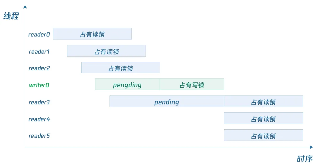 粗略追了一下glibc的源码,pthread读写锁的实现也是采用writer-preferring(__nr_writers_queued记录正在等待写锁的writer)。