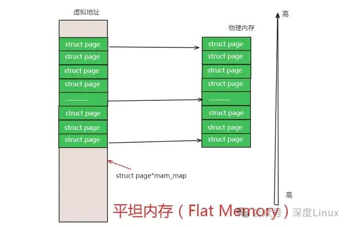 在这种模型下,内核运用一个全局的 mem_map 数组来精心管理整个物理内存,如同一位严谨的图书管理员,将每一页物理内存都按照顺序在 mem_map 数组中安排得井井有条,数组的下标即为对应的物理页框号(PFN)。举例来说,若系统的物理内存从地址 0 开始,依次递增,毫无间断,那么 PFN 为 0 的物理页,恰好对应 mem_map 数组的第 0 个元素,以此类推,这种一一对应的线性关系使得内存管理变得直观易懂。