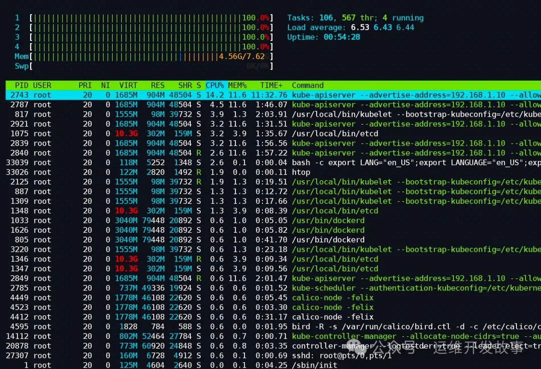 集群中的其他服务器也按上面的流程检查了一遍,发现都是一样的服务、一样的二进制、一样的计划任务。处理过后,服务器节点的CPU都降下来了。