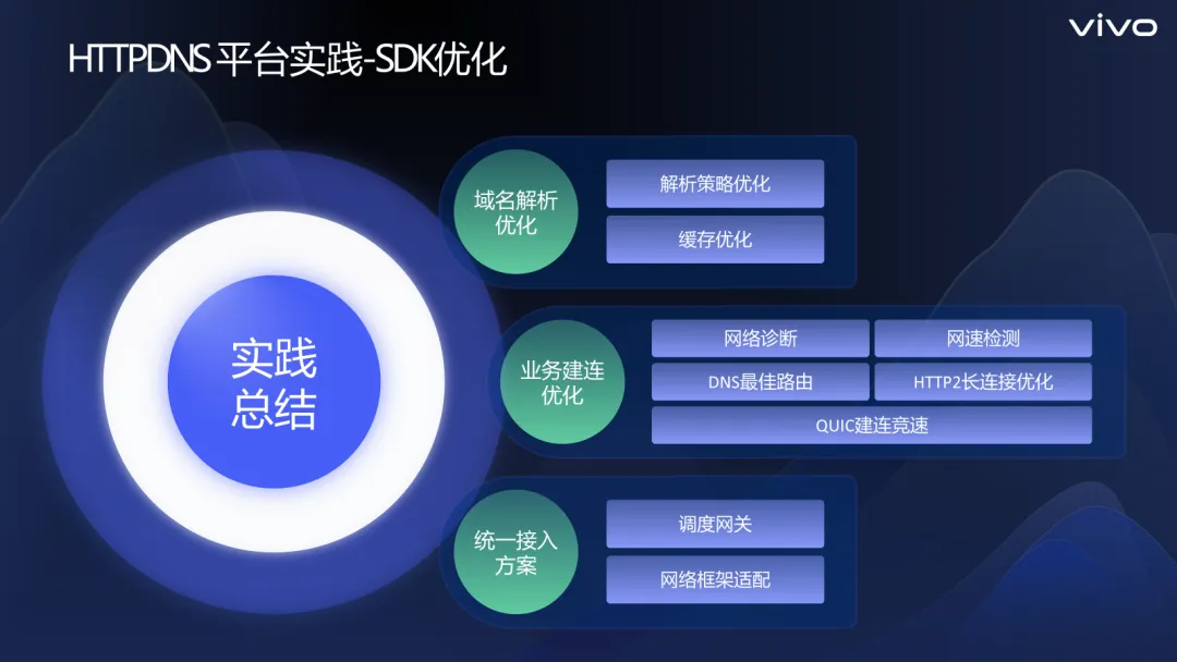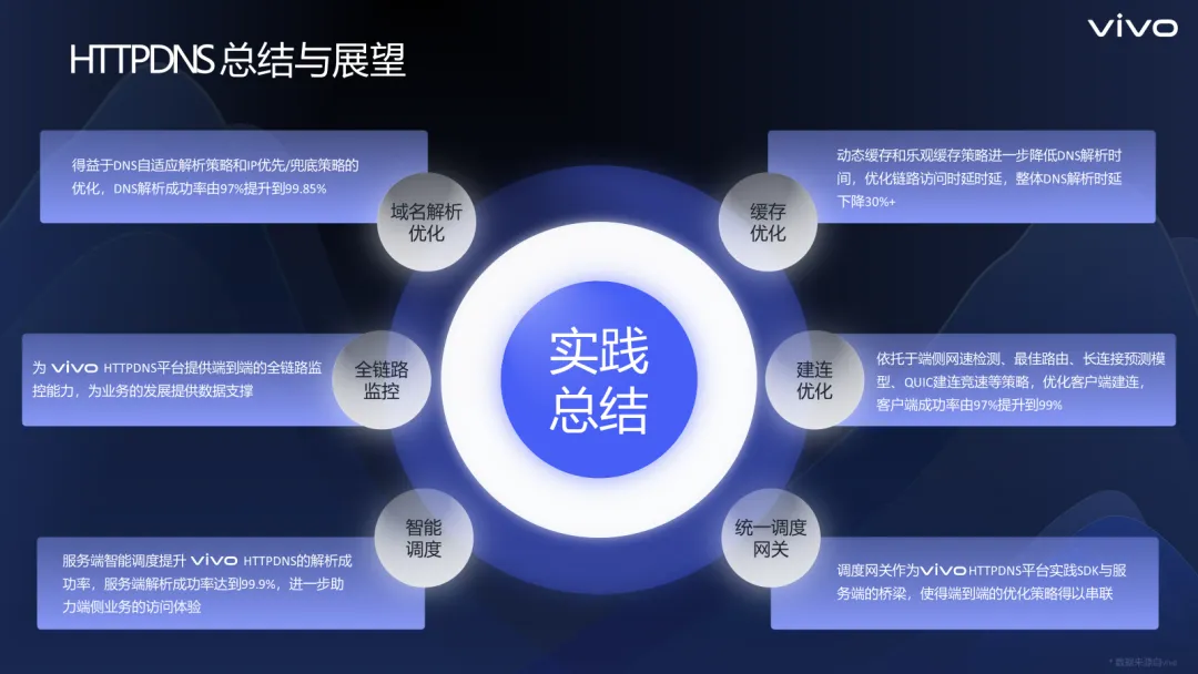 3.1 vivo HTTPDNS 建设总结vivo HTTPDNS 平台的诸多实践,没有全部详细描述,业务的优化方面也将持续建设。