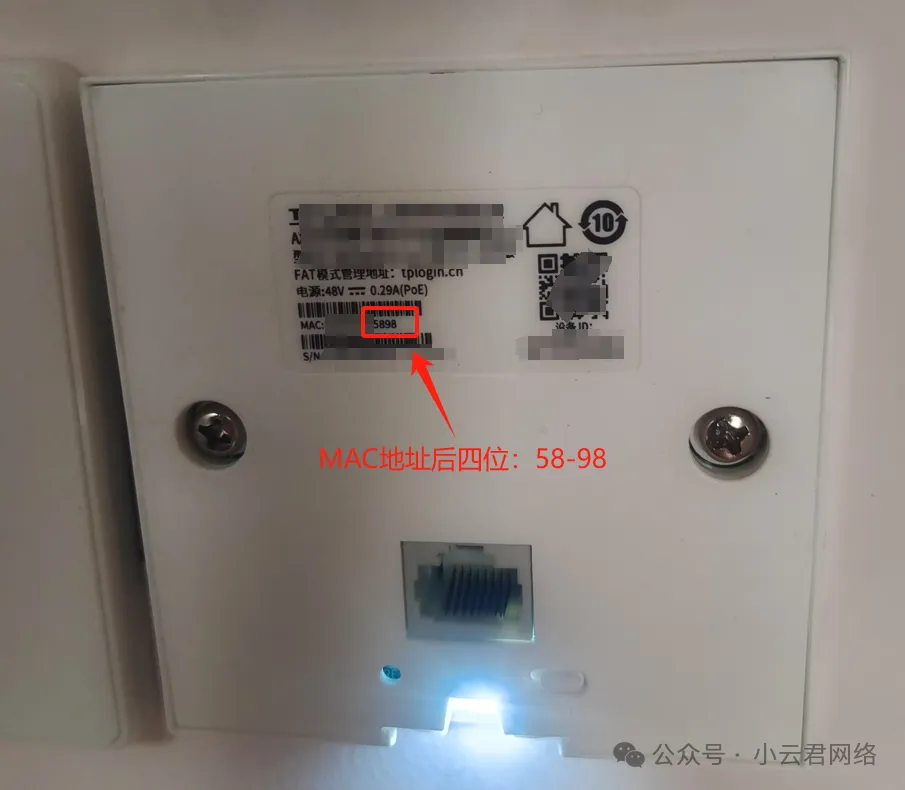 可以看到MAC后四位:9E-B3。然后再将手机面前的AP壳拆下开比对下MAC地址: