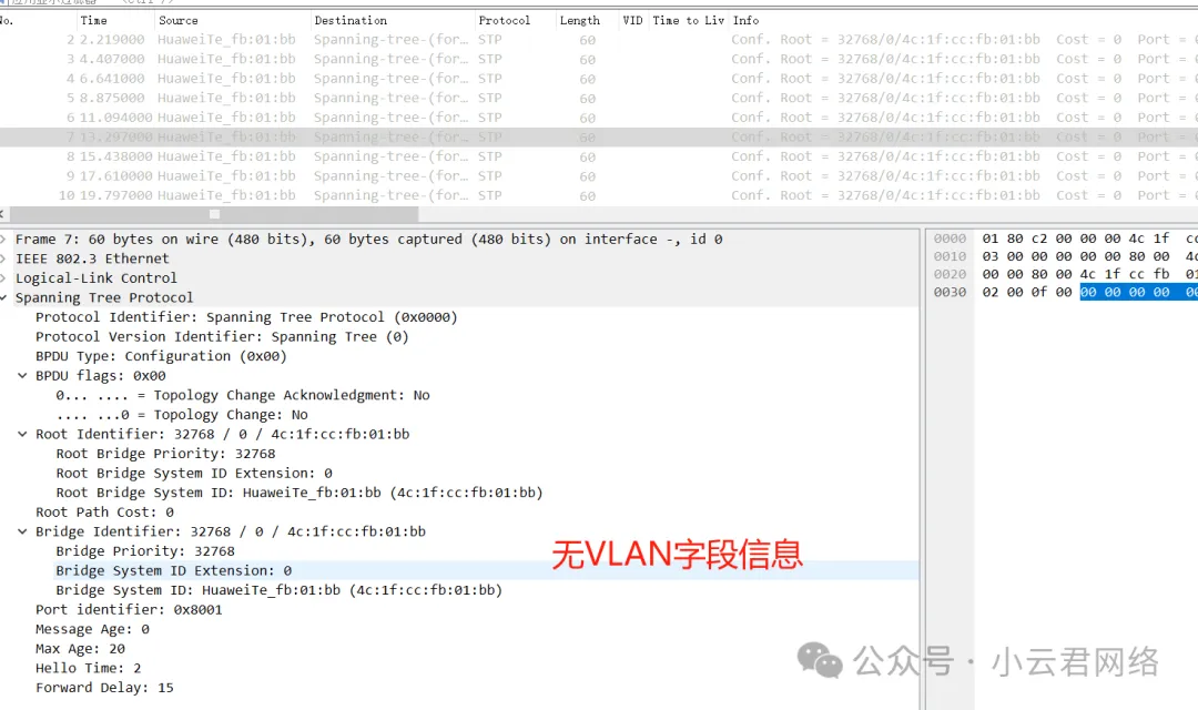 原理分析STP协议收敛的依据是BPDU报文的交互,交换机端口使能STP后,BPDU是端口发出来的,每个端口发出的BPDU均不一样。BPDU报文是802.3/LLC帧格式封装的,和我们常见的以太网数据报802.3 Ethernet 2帧格式有一些区别: