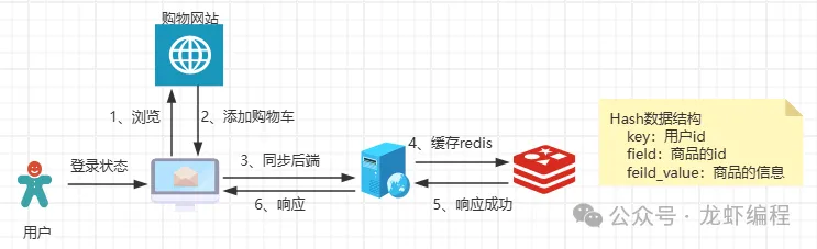 2、登录购物车的实现方案用户登录的购物车实现需要考虑数据存储方案,即就是购物车数据放缓存(如Redis)还是数据库(如Mysql),如下设计了一套将购物车数据存储Redis的加购物车方案: