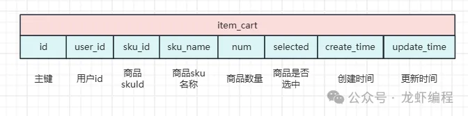 (1)购物车数据存储在Mysql中,数据可靠性高于Redis,因为Redis有可能发生丢数据的情况;另一方面Mysql支持丰富的查询方式,使得购物车的数据做查询和统计的时候非常的方便。用户的购物车表设计如下所示:
