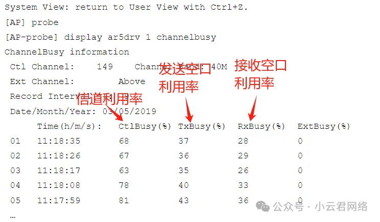 计算:信道利用率 =(传输有效数据的时间 / 总可用时间)×100%。例如,一个信道在 10 秒内,有 6 秒在传输有效数据,那么信道利用率为(6/10)×100% = 60%,一般来说,当信道率高于60%时则表示该射频繁忙。