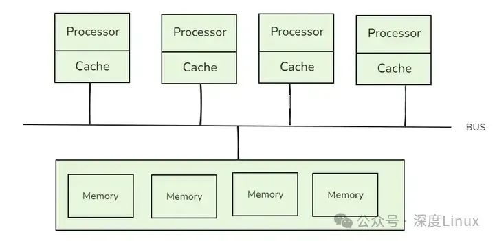 在早期的计算机系统中,随着应用对计算性能需求的不断攀升,多处理器技术应运而生,其中对称多处理(SMP)架构备受瞩目。在 SMP 架构下,多个处理器平等地连接到同一条共享内存总线上,共享同一物理内存空间,就像一群小伙伴共同围绕着一个公共的玩具箱,每个人都能平等地从中拿取玩具。这种架构的设计初衷是为了充分利用多个处理器的并行计算能力,通过操作系统的调度,让不同的处理器协同处理各种任务,从而提升系统的整体性能。