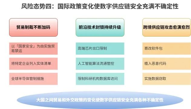 大国之间贸易和外交政策的变化使数字供应链安全充满各种不确定性。如何在动荡的国际环境中保障数字供应链安全,也已成为当前各国政府、企业乃至整个国际社会亟待解决的重大课题。