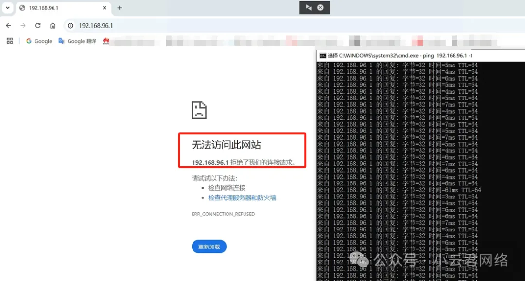 此时将内网核心交换机插到路由器LAN口,突然发现路由器能ping通,但Web管理页面怎么也进不去了!