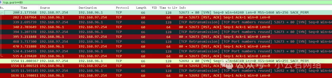 过滤后可以看到大量的终端会主动去与网关(路由器)的80端口建立连接。