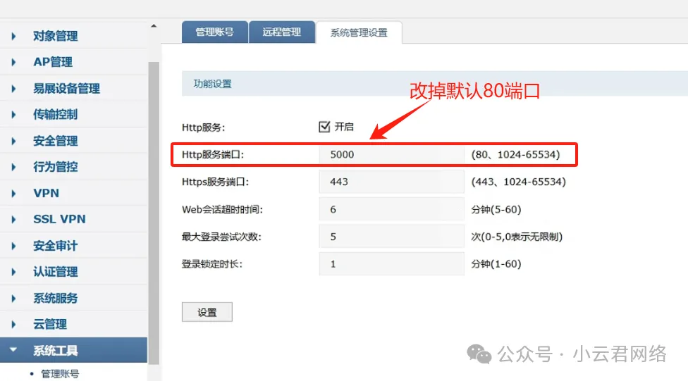 改不了终端就只能改路由器了,目前来看终端只会访问网关的http 80端口服务,那么可将http服务端口修改为非80端口尝试使用:
