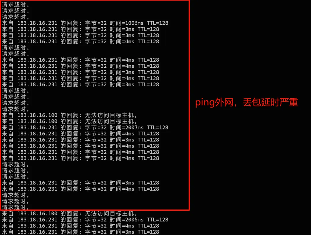 可以看到丢包相当严重。