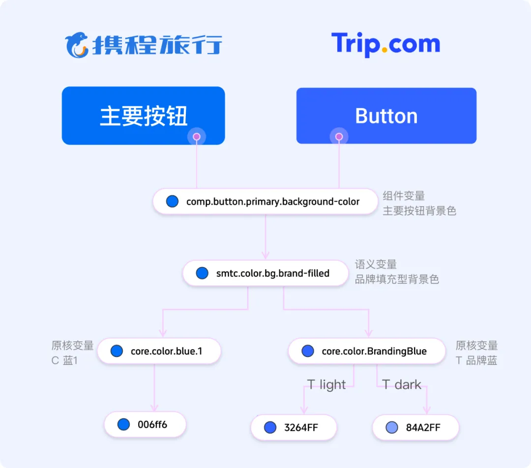 这种方法提升了设计效率,增强了用户对品牌的识别和信任。通过标准化设计语言,携程实现了多品牌间的视觉统一,为用户提供一致且流畅的体验,同时保留品牌独特性。