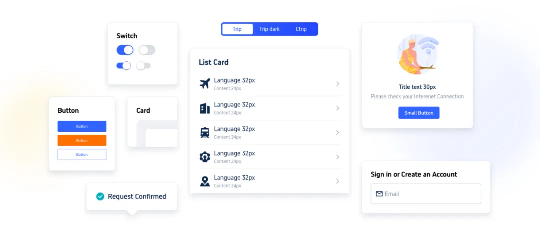 基于以上的解决方案,我们最终落地了一套携程的设计系统(Design System),这是一套综合性的指导原则、组件和相关规则,帮助团队以一致且高效的方式设计和开发数字产品。包含以下几个关键元素: