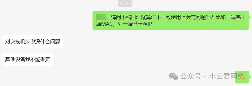 因此,交换机的标准汇聚算法下,两端算法不一致是不会影响通信的。