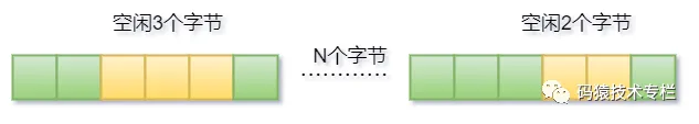 上图中的空闲3个字节和空闲2个字节都是内存碎片。