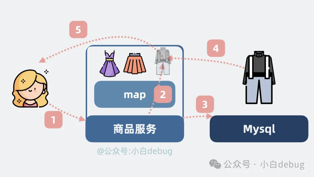 我们很容易想到,可以在商品服务的内存中,申请一个字典,在 python 里叫 dict,在 java 里叫 map。